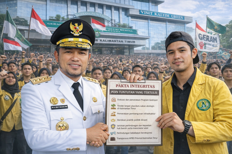 ADAKAH.ID,SAMARINDA – Aliansi Gerakan Rakyat Menggugat (GERAM) Kalimantan Timur menyerahkan dan menandatangani Pakta Integritas bersama Pemerintah Provinsi Kaltim, Senin (23/2/2026). Dokumen tersebut memuat tujuh tuntutan strategis yang diklaim sebagai upaya menjaga keutuhan dan masa depan Kalimantan Timur. Dalam pakta tersebut, Pemerintah Provinsi melalui pimpinan menyatakan menerima, menyetujui, dan menyepakati seluruh tuntutan GERAM untuk dijadikan bahan […]