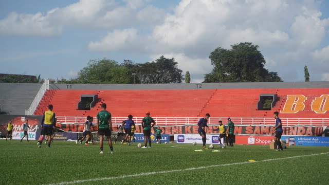Sesi latihan ringan Borneo FC menghadapi Arema FC Minggu siang besok di Stadion Segiri hari ini (Sabtu) 23 Juli 2022.