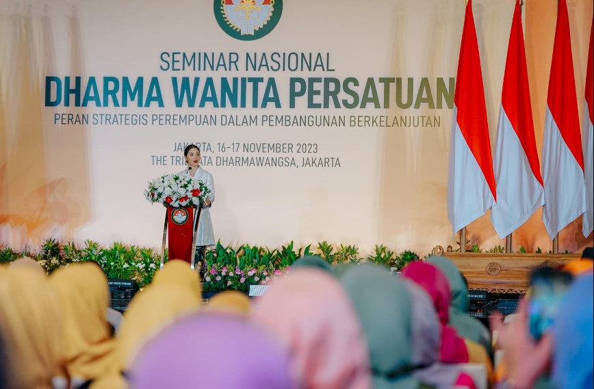 ADAKAH.ID, SAMARINDA – Seminar Nasional Dharmawanita Persatuan yang digelar di The Tribarta Darmawangsa, Jakarta, berlangsung selama dua hari, 16 hingga 17 November 2023, diikuti oleh Dharmawanita Persatuan (DWP) Dinas Pemuda dan Olahraga (Dispora) Kalimantan Timur (Kaltim). Seminar tersebut mengusung tema “Peran Strategis Perempuan dalam Pembangunan Berkelanjutan”.
