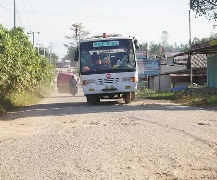 Sehingga kalau berdebu sudah pasti tidak baik udara yang di hirup masyarakat yang bermukim dipinggir jalan poros ini.