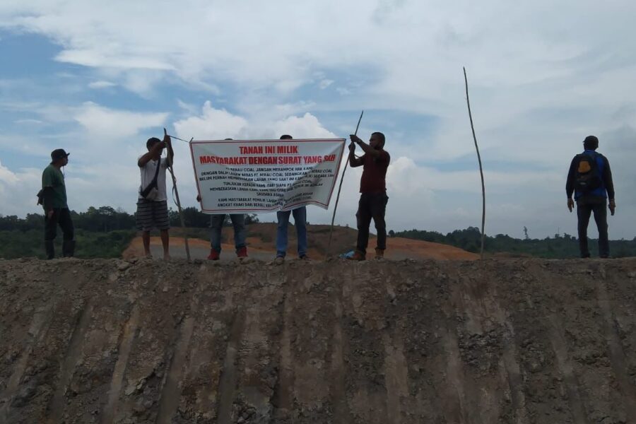 Belasan warga menolak tambang batu bara di wilayah site Prapatan, Tanjung Redeb, Berau yang diduga diklaim milik PT Berau Coal.