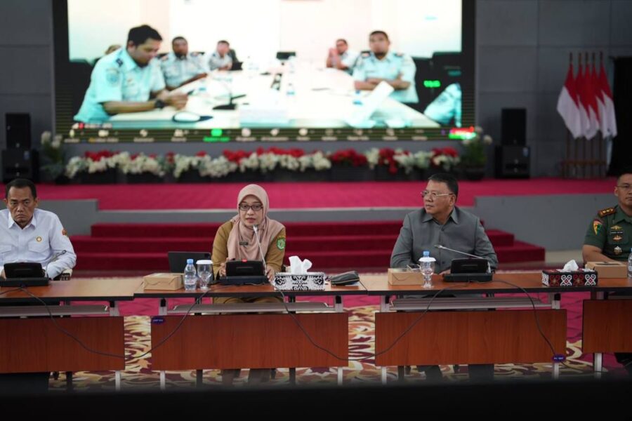 Rapat konsolidasi dipimpin Sekretaris Daerah Provinsi Kaltim Sri Wahyuni, didampingi Direktur Ketahanan Pangan OIKN, Setia Lenggono dan Sekretaris Daerah Kota Samarinda Hero Mardanus Satyawan, kepala biro dan OPD terkait dilingkup Pemprov Kaltim dan hadir secara online dari kementerian dan lembaga terkait, di Pendopo Odah Etam Samarinda, Senin 22 Juli 2024.