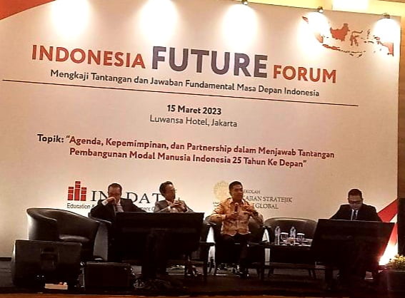 Itu disampaikan saat hadir dalam acara Indonesia Future Forum (IFF) yang bertema “Agenda, Kepemimpinan, dan Partnership dalam Menjawab Tantangan Fundamental Indonesia 25 Tahun ke Depan, khususnya di Bidang Pembangunan Modal Manusia”.