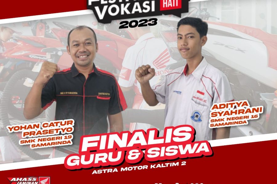 Dalam Festival Vokasi Satu Hati tingkat Nasional Tahun ini, Astra Motor Kaltim 2 akan diwakili oleh Aditya Syahrani perwakilan dari SMKN 16 Samarinda sebagai finalis siswa dan Yohan Catur Prasetyo perwakilan dari SMKN 19 Samarinda sebagai finalis guru.