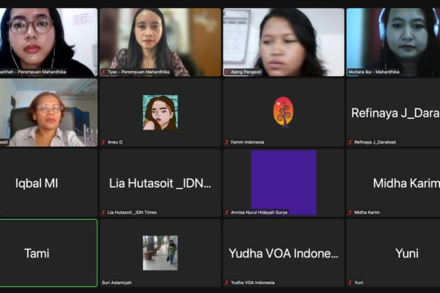 Caption: Jumpa Media via daring Perempuan Mahardika bersama awak media, Jumat (20/5/2022) (Adakah.id)