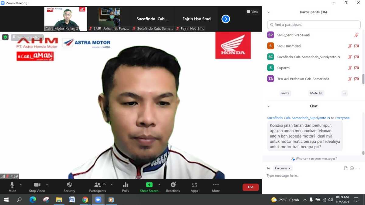 Webinar Safety Riding Astra Motor KAltim 2 bersama PT. Sucofindo Samarinda dan Sangatta HI 6 November 2021
