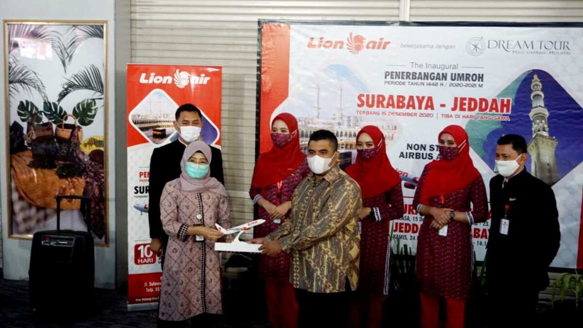 Penerbangan Perdana “Premium Services” Umroh, Lion Air Melayani Surabaya – Jeddah – Surabaya Joyo Man 15 Desember 2020