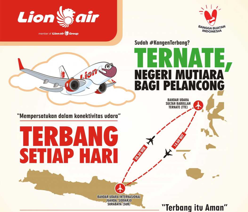 Terbang Dari Surabaya – Ternate dan Sebaliknya dengan Lion Air, Harga Tiket Dibuka Tak Lebih Rp 800 Ribu Joyo Man 5 Januari 2021